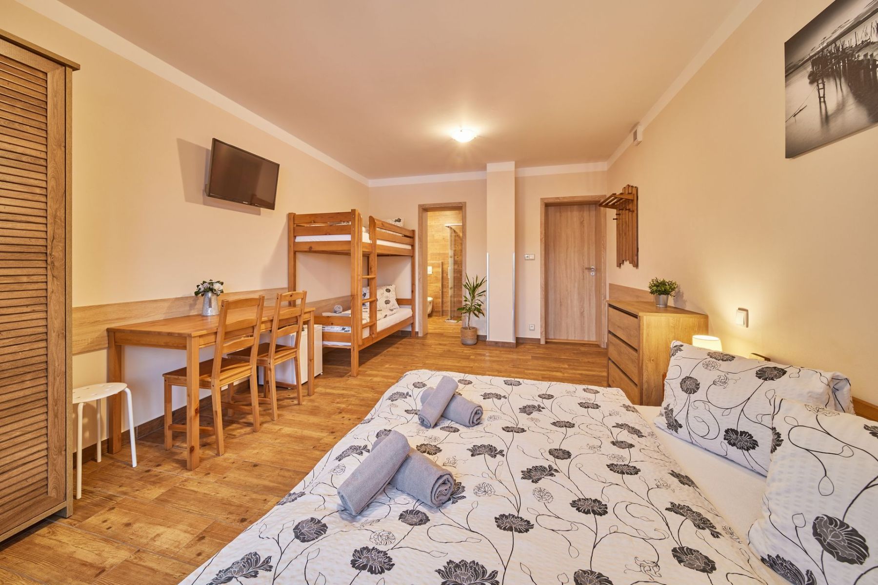 Wir bieten Ihnen moderne Unterkünfte in Zwei- bis Vierbettzimmer an, die komplett und gemütlich eingerichtet sind. Manche Zimmer besitzen einen Balkon mit Aussicht Richtung Johannisbad.