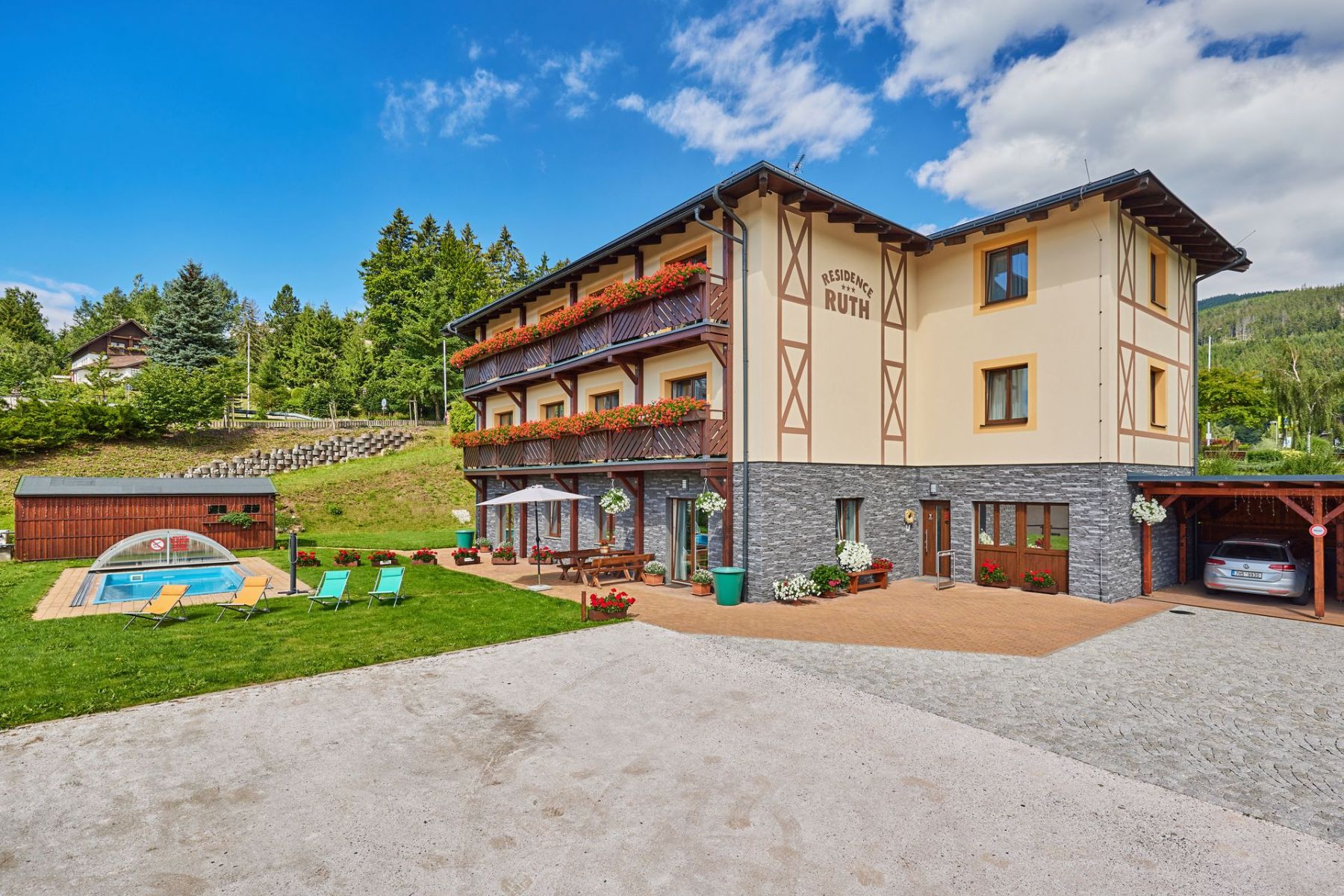 Galeria Ruth Residence Google Street View 360° https://maps.app.goo.gl/fKWbMG2BaVoMh3dX7 Wygląd zewnętrzny 2-osobowy pokój łóżko małżeńskie Pokój 2-osobowy z osobnymi łóżkami Pokój 3-osobowy Pokój 4-osobowy Łazienki w pokojach Śniadanie + wnętrze Wellness Ciekawe miejsca w okolicy